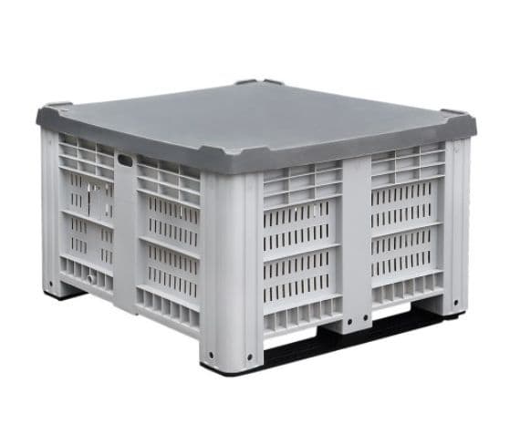 Estos bins están ventilados en los cuatro costados, asegurando una excelente circulación de aire para mantener tus productos frescos y en óptimas condiciones. La tapa de polietileno MAD de color gris proporciona una protección adicional contra contaminantes, mientras que el aditivo anti-UV en el material PEAD prolonga la vida útil del producto.