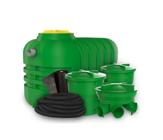 | Descripción | Fosa séptica con kit de instalación, ideal para viviendas rurales y pequeños negocios. Fabricada en polietileno LLDPE, diseño corrugado y horizontal, ligera y fácil de instalar. | Kit completo con fosa séptica de 1200 L, diseñada para evitar acumulación de gases. Incluye accesorios de drenaje para una instalación segura y eficaz. | Fosa séptica de 1200 L fabricada en polietileno LLDPE, con manto ondulado reforzado y escotilla de 600 mm. Incluye accesorios y es ideal para hasta 5 personas. |