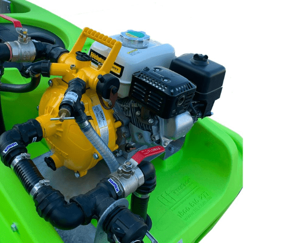 El sistema incluye un carrete de manguera de 36 metros con pitón, un kit de succión rápida de 6 metros y un sistema de llenado de fondo, permitiendo abastecerse fácilmente desde canales, represas, estanques o sistemas de recolección de agua de lluvia. Sus conexiones Camlock aseguran cambios rápidos y eficientes al momento de llenar o redistribuir el flujo.