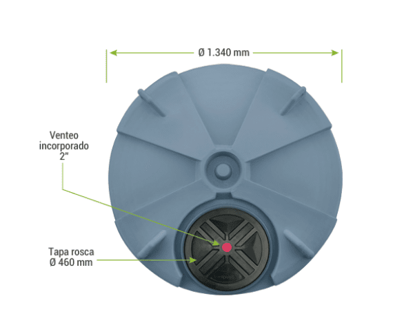 Su estructura incluye ganchos de izaje integrados y una cúpula reforzada con entre 4 y 8 caras planas, lo que facilita la instalación de accesorios como fittings, venteos de seguridad o válvulas de drenaje, sin necesidad de modificaciones adicionales. Además, el volumen útil es igual al volumen declarado, lo que asegura una capacidad real de almacenamiento de 2000 litros sin pérdidas.