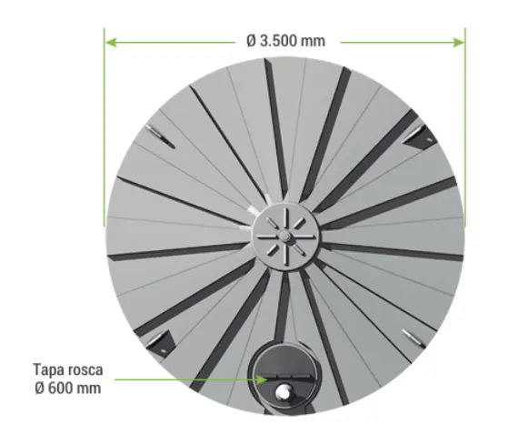 El diseño de su cúpula superior aporta mayor rigidez estructural, evitando deformaciones por presión interna o temperaturas elevadas. Protege el agua de contaminantes externos y refuerza la integridad del estanque.