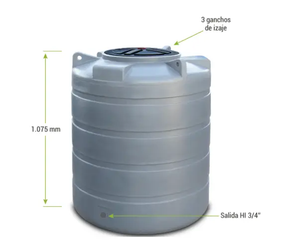 Con un diseño cilíndrico optimizado, estructura reforzada y protección UV-8, es ideal para usos domésticos, agrícolas, comerciales o situaciones de emergencia. Su tamaño lo convierte en una alternativa práctica para quienes necesitan capacidad media sin sacrificar espacio, y su color gris evita la proliferación de algas, manteniendo el agua limpia por más tiempo.