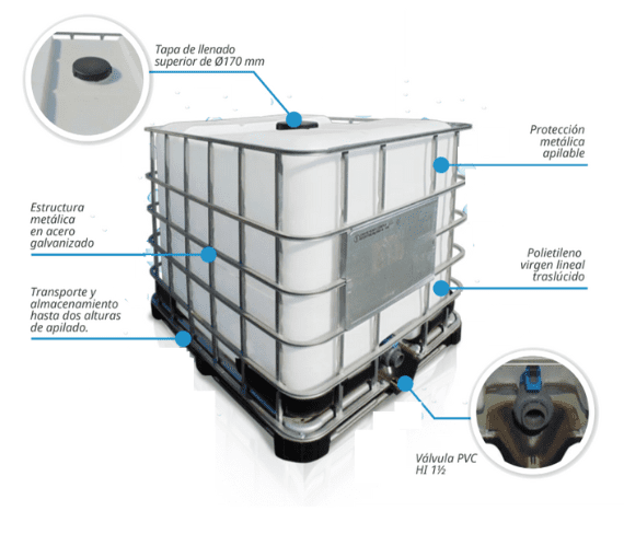 Características destacadas del Estanque Industrial IBC 1000 ltrs