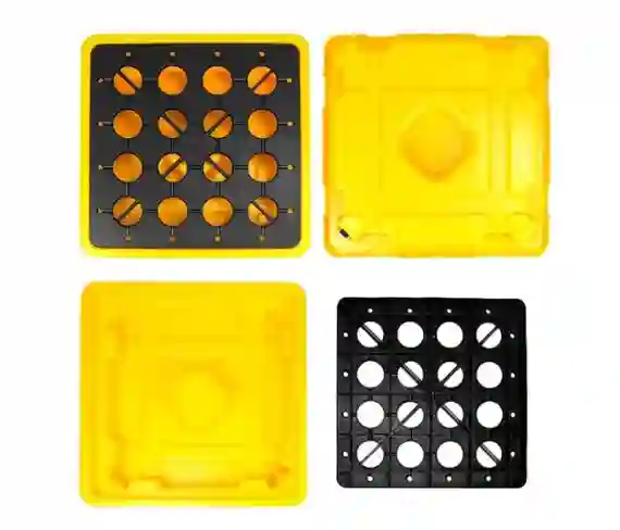 - Protección contra derrames: La principal ventaja de este pallet es su capacidad para prevenir y contener derrames accidentales de sustancias peligrosas y líquidos inflamables. Su diseño con despiche de vaciado lateral y tapa roscada asegura un acceso práctico y seguro, evitando la dispersión de líquidos y protegiendo el entorno de posibles contaminaciones.